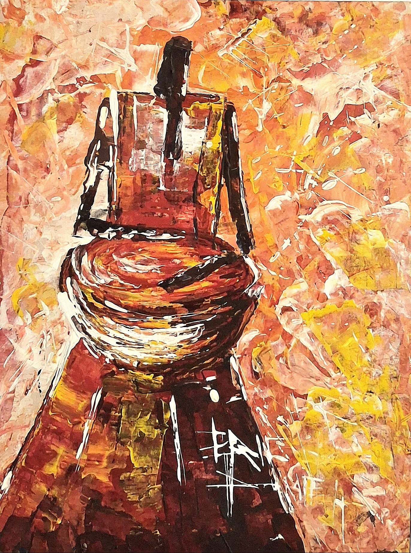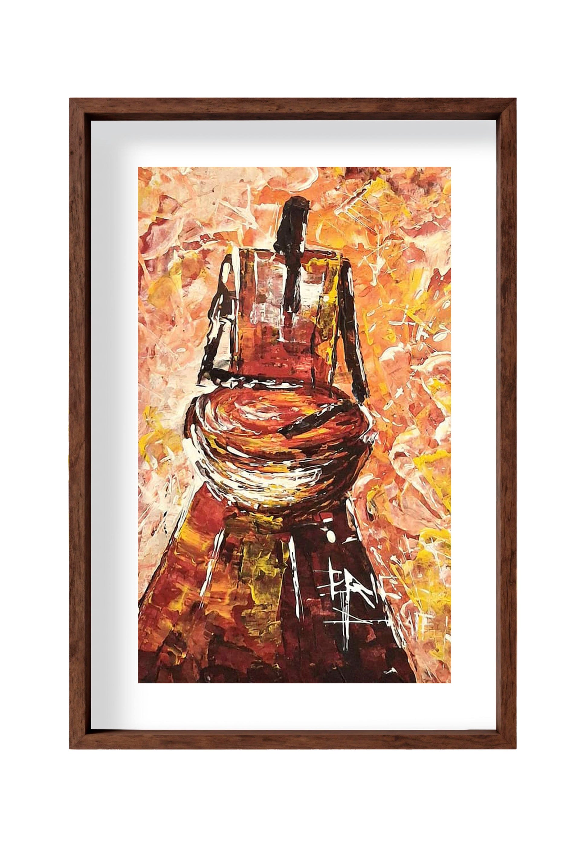 A tribute to the heartbeat of African royalty, the drummer commands both silence and song. This piece captures the sacred energy of rhythm and leadership, blending warm earth tones with expressive strokes that echo power, duty, and cultural pride. The textured palette of gold, sienna, and ochre mirrors the pulse of the drum — the rhythm of the land.